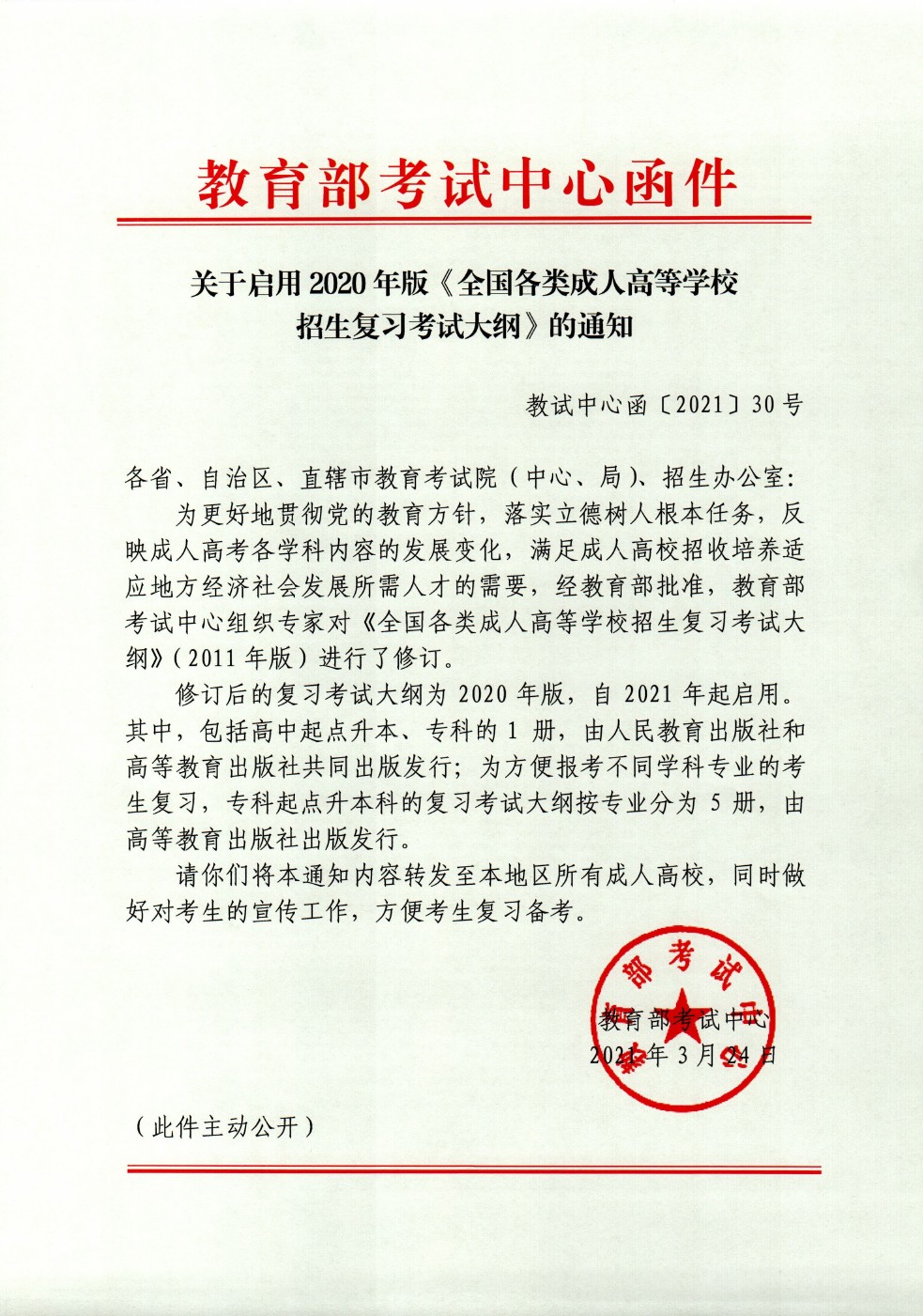 关于启用2020年版《全国各类成人高等学校招生复习考试大纲》的通知-继续教育学院